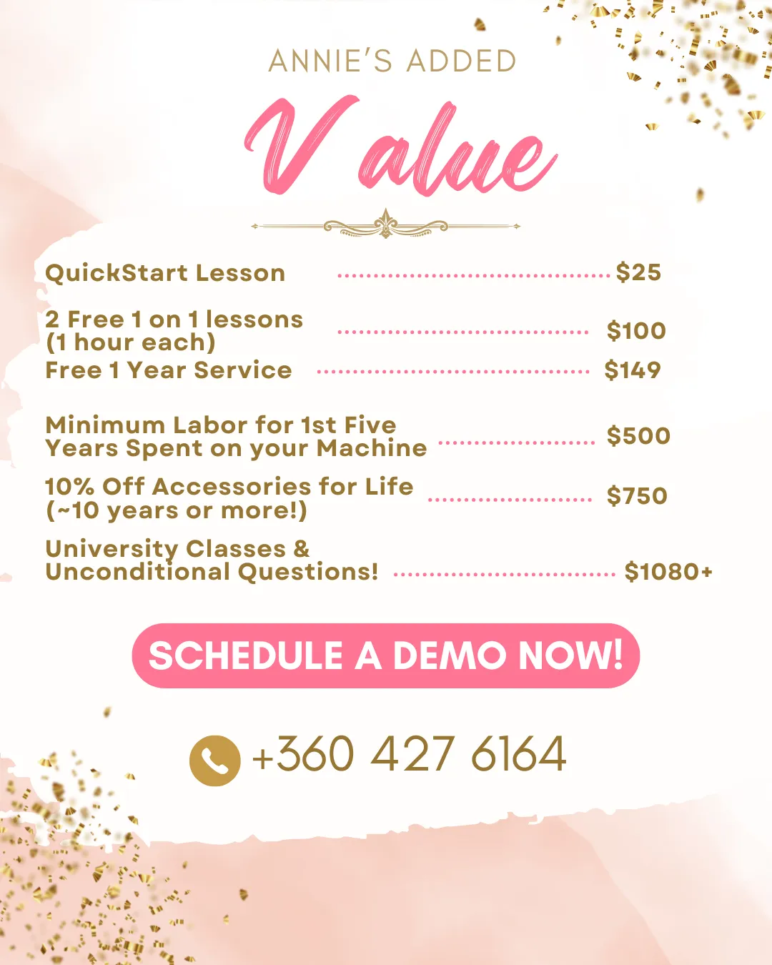 We pride ourselves on our educational and service values! You just spent a lot of money on a new machine, and we want to ensure that you have the knowledge and confidence to make the most of it! Please make sure to schedule your lessons & sign up for Universities, as they are free to you!